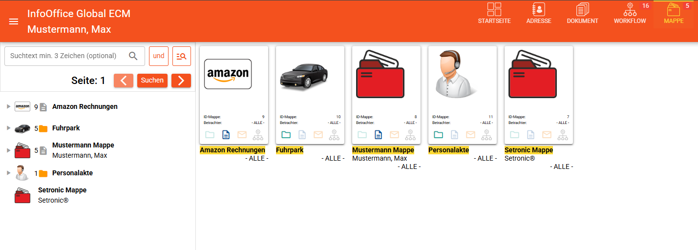 Mappen sind virtuelle Sammlungen innerhalb von InfoOffice, die Dokumente thematisch, prozessbezogen oder personenbezogen bündeln.